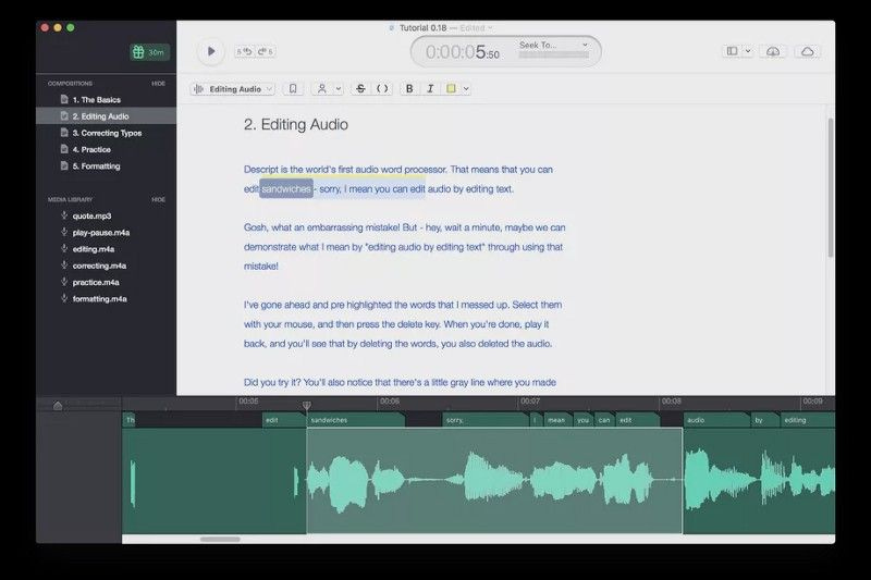 While we were building it, we also built Descript, an internal tool. There’s been a lot of industry progress in automatic speech-to-text transcription, so we wanted to leverage that to build an audio editor that felt more like a word processor. We showed it to audio and video producers and by and large they were excited. Last fall, we decided to spin out Descript as a separate company. Our goal is to build the next-gen tool for audio and video content driven by speech.