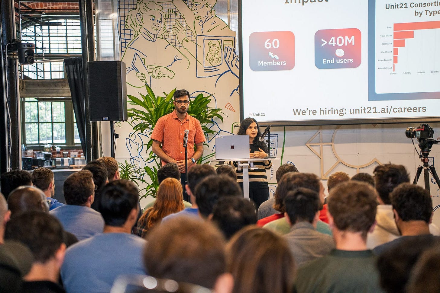 Off the record, one of SPC's earliest members Trisha Kothari and her teammate Dhiraj Bhat gave us a peak at the Consortium at Unit 21, a network-based data sharing platform to help companies collaborate in the fight against fraud.