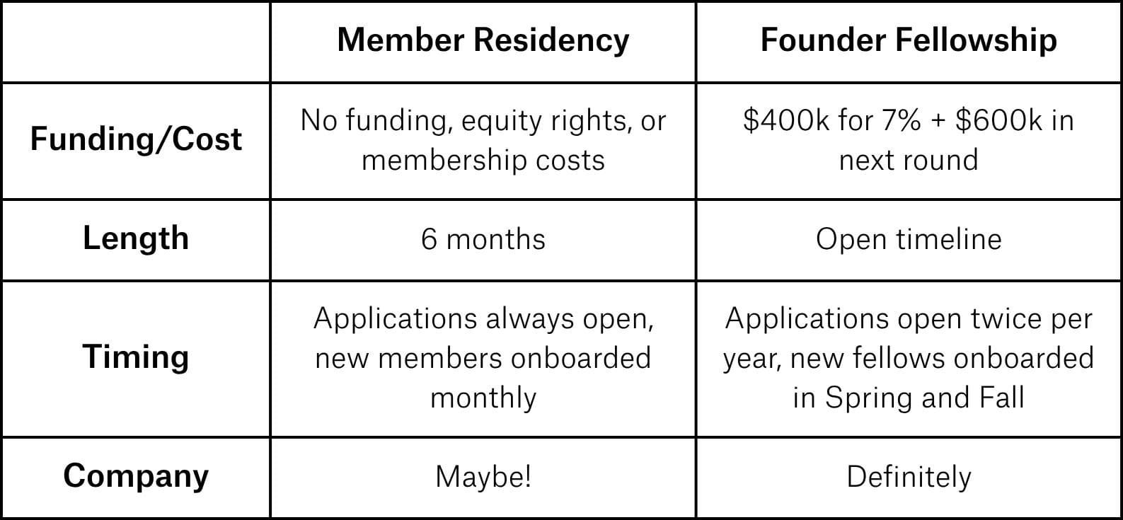 Yes, though we consider your company's progress in our evaluation. Member Residency is primarily a place for technologists in the -1 to 0 stage of figuring out what’s next. The SPC Founder Fellowship serves technologists who want funding on their way into SPC.